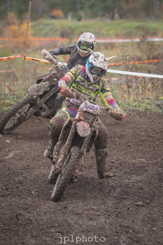 Innan Skövde är det deltävling 2 i Söderhamn, jag har en go känsla i kroppen inför tävlingen, fått veta att det är sand, påminner om Hallsbergs crossbana med lite sten. Stämningen bland deltagarna är fantastisk, som alltid. Starten går och allt känns bra fram till första mötet med SANDEN, jag lägger mig X antal gånger under tävlingen och jag kommer i mål som 9:a av 14, trötthet har fått en ny innebörd i min enduroåkning. Sand var jobbigt, jag hade inte tekniken för att köra varken stalp eller sand. Efter Söderhamn bestämde jag mig för att ta hjälp, för 2024 är det jag som skall köra SÖDERHAMN med ett leende på läpparna, motgångar gör mig målmedveten. Inför deltävling 3 i Skövde börjar jag att träna på broms -och kurvteknik. Men däremellan i MAJ är det 6-timmars lagtävling i Strängnäs tillsammans med ett härligt gäng brudar, dessa tjejer är så härliga, dem har ett team som heter endurozniglarna! så mycket glädje och kärlek, tack att jag fick köra tillsammans med er, och det är nu jag också inser att jag älskar hårdbana, det går ganska snabbt och farten börjar komma.
