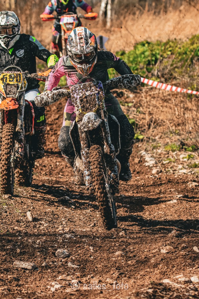 Körningen kändes bra från start, tog min första HOLESHOT, först ut! Sedan flyter det på, gör något misstag så att jag tappat min förstaplats men lyckas köra upp mig! Energin är bra, stalpen tuggar jag mig igenom som en Queen… NU sitter jag här med en ställning och väntar på en MR-röntgen! 6 veckor, inget brutet och håller tummarna för att inga ledband eller korsband är av… Försäsongsträningen gav resultat, och jag är superstolt över min prestation. Farten finns där, olyckor är svåra att styra !
